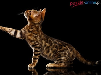 Puzzle Łapka, Kot bengalski, Uniesiona, Czarne tło