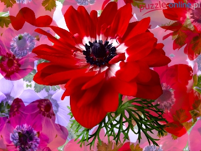 Puzzle Zawilec, Kwiaty, Czerwony, Grafika