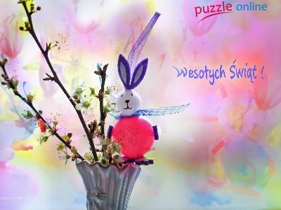 Puzzle Święta, Zajączek, Kwiaty, Wielkanoc