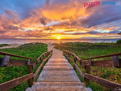 Pomost, Maui, Chmury, Hawaje, Morze, Zachód słońca
