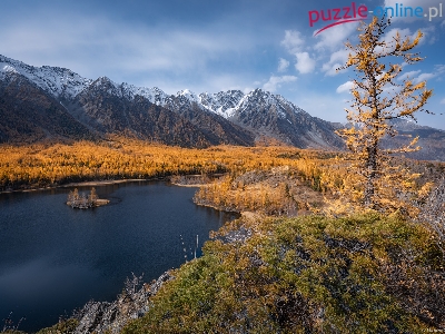Rzeka Argut, Rosja, Lasy, Skały, Dolina, Góry Katuńskie, Jesień, Republika Ałtaju