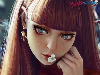 Kolczyki, Grafika, Zamyślona, Dziewczyna, Kwiatek