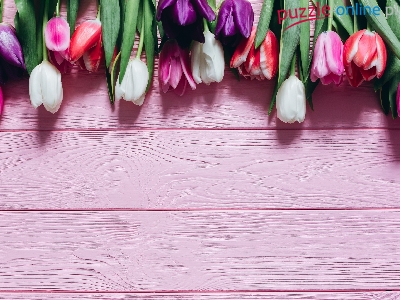 Tulipany, Deski, Kwiaty, Kolorowe, Różowe