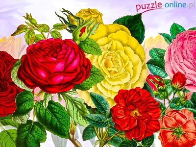 Puzzle Kolorowe, Grafika, Kwiaty, Róże