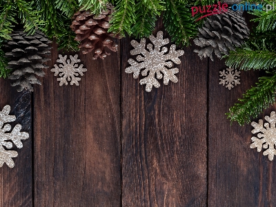 Śnieżynki, Deski, Świąteczna, Szyszki, Ozdoby, Gałązki, Kompozycja