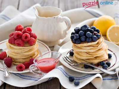 Owoce, Cytryna, Ściereczka, Jagody, Naleśniki, Maliny, Talerzyki