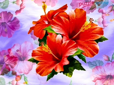 Puzzle Hibiskusy, Czerwone, Kwiaty, Grafika