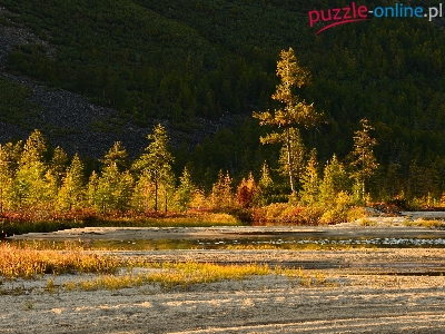Puzzle Rzeka, Jesień, Drzewa, Piasek