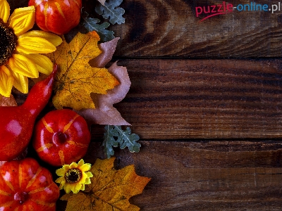 Puzzle Liście, Kompozycja, Dynie, Kwiaty