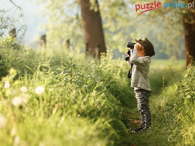 Puzzle Ścieżka, Dziecko, Lornetka, Rośliny