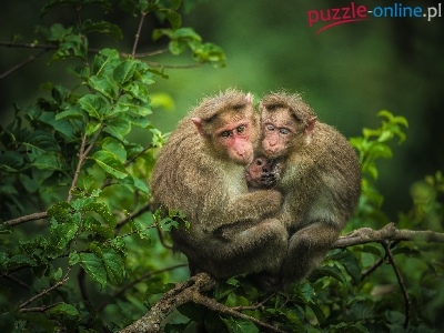 Puzzle Małpy, Drzewo, Dwie, Potomstwo