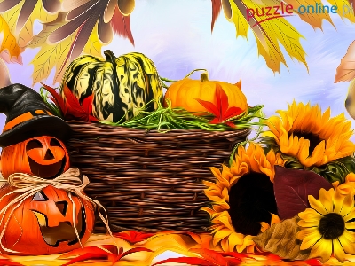 Dynie, Liście, Słoneczniki, Halloween, Koszyk, Kwiaty