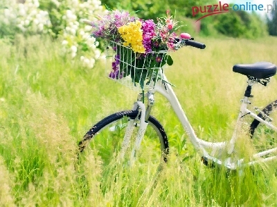 Puzzle Rower, Łąka, Trawa, Kwiaty