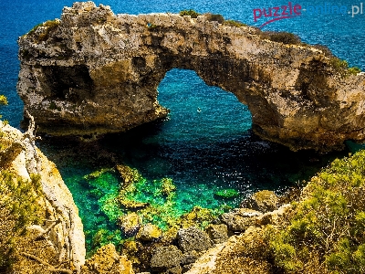 Łuk, Gmina Santanyi, Hiszpania, Morze, Skała, Most skalny Es Pontas, Majorka