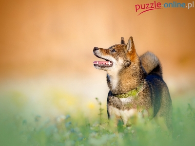 Puzzle Obroża, Pies, Shiba inu, Trawa