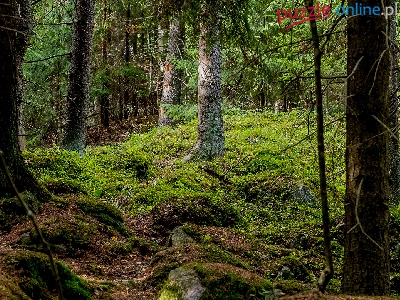 Puzzle Omszałe, Las, Drzewa, Kamienie