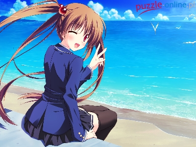Plaża, Niebo, Anime, Ptaki, Dziewczyna, Morze, Manga