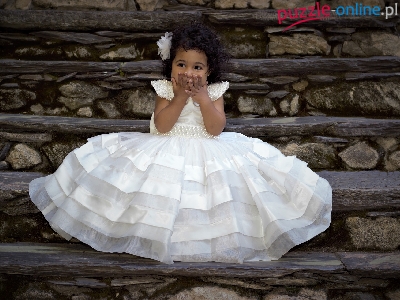 Włosy, Sukienka, Dziewczynka, Kręcone, Biała