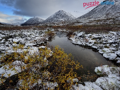 Chibiny, Półwysep Kolski, Rzeczka, Kamienie, Rośliny, Drzewa, Rosja, Góry, Zima