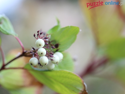 Puzzle Białe, Dereń biały, Krzew, Owoce