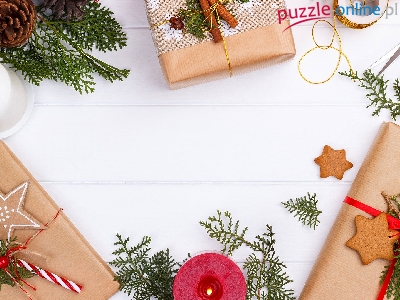 Prezenty, Ciasteczka, Nożyczki, Gałązki, Świąteczne, Świece, Szyszki