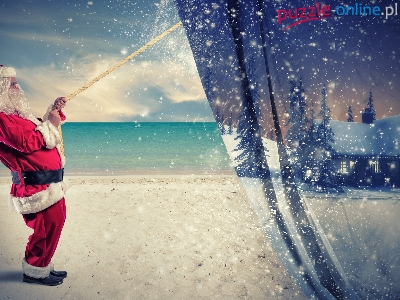 Puzzle Morze, Mikołaj, Plaża, Święta