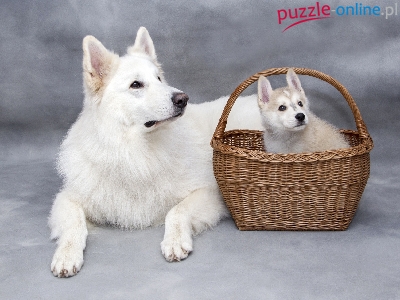 Siberian husky, Biały owczarek szwajcarski, Koszyk, Pies, Szczeniak, Wiklinowy