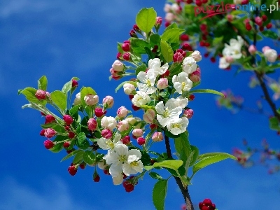 Jabłoni, Wiosna, Kwiaty, Niebo