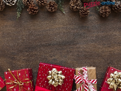Puzzle Gałązki, Świąteczne, Prezenty, Szyszki