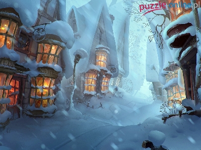 Puzzle Domy, Zima, Śnieg, Digital Art