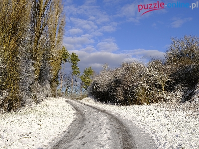 Puzzle Drzewa, Zima, Droga, Krzewy