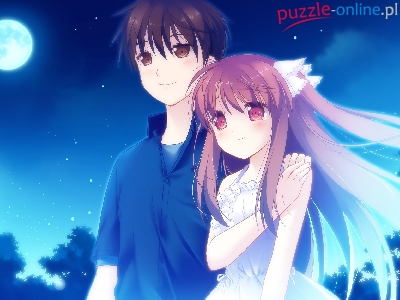 Chłopak, Zakochani, Księżyc, Manga, Dziewczyna, Noc