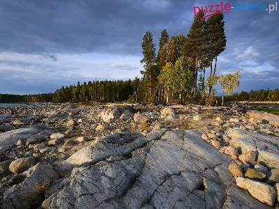 Drzewa, Skały, Rosja, Jezioro Siegoziero, Kamienie, Karelia