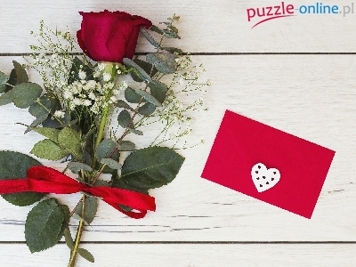 Gipsówka, Koperta, Walentynki, Czerwona, Róża, Wstążeczka, Serduszko