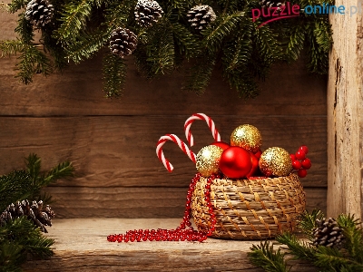 Bombki, Koszyk, Gałązki, Szyszki, Drewno, Lizaki, Boże Narodzenie, Jagody, Koraliki
