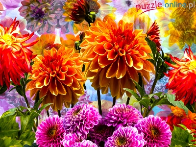 Puzzle Dalie, Kwiaty, Kolorowe, Grafika