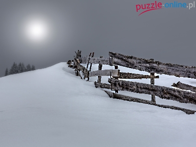 Księżyc, Wzgórze, Zima, Noc, Płot