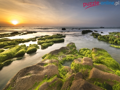 Omszałe, Skalisty, Wschód słońca, Wybrzeże, Brzeg, Skały
