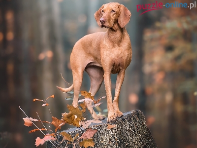 Wyżeł węgierski krótkowłosy, Liście, Brązowy, Pies, Pieniek
