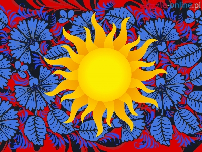 Sztuka, Słońce, Liście, Kwiaty, Malarstwo, Khokhloma, Tło