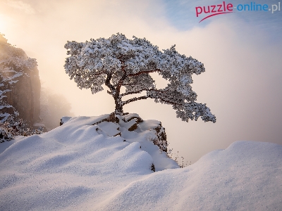 Góry, Park prowincjonalny Daedunsan, Korea Południowa, Drzewo, Zima, Mgła, Jeolla Północna