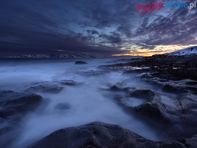 Skały, Rosja, Zatoka Kolska, Chmury, Morze Barentsa, Zima, Miejscowość Teriberka, Obwód murmański