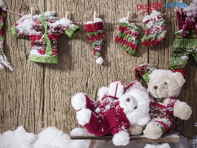 Sznurek, Misie, Śnieg, Pluszowe, Sanki, Ubranka