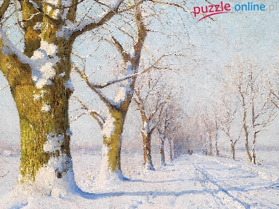 Walter Moras, Drzewa, Droga, Obraz, Pola, Malarstwo, Zima, Ośnieżone