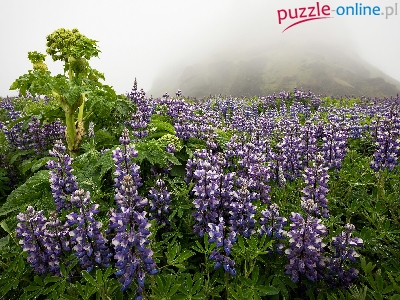 Roślina, Mgła, Kwiaty, Łubin, Góra