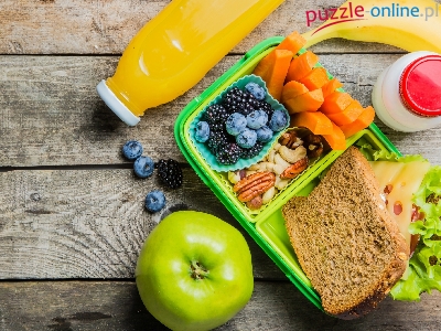Banan, Marchewka, Sok, Deski, Pojemnik, Chleb, Jagody, Jabłko, Śniadanie