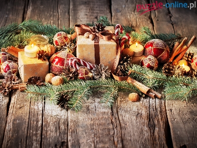 Świeczki, Prezenty, Boże Narodzenie, Gałązki, Bombki, Szyszki