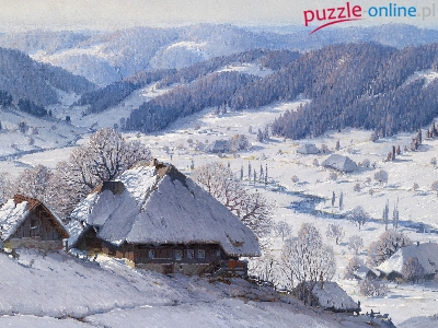 Domy, Karl Hauptmann, Malarstwo, Drzewa, Pejzaż, Góry, Zima, Obraz