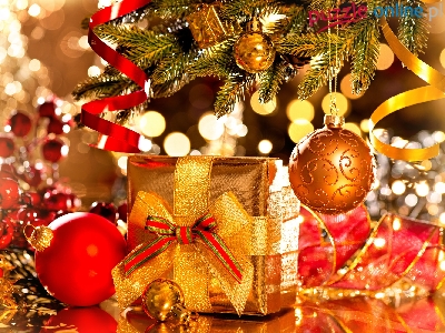 Bombki, Świąteczny, Kompozycja, Boże Narodzenie, Prezent, Wstążka