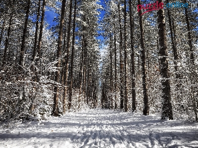 Las, Drzewa, Dzień, Zima, Droga, Słoneczny